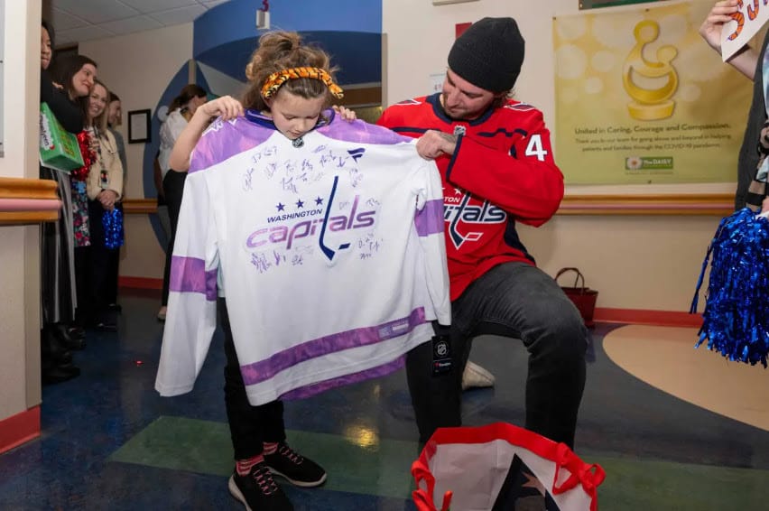 Logan Thompson surprised 7-year-old Sutton Bullard on Friday to celebrate her bell-ringing ceremony, marking the end of her 800 days of chemotherapy. Thompson first met Sutton at the Capitals’ 2024 Hockey Fights Cancer skate and wanted to join her and her family at their local hospital to celebrate the big day. “I was really privileged to be invited by her and her family,” Thompson said. “It was a really touching moment—really emotional—and I’m just happy I was able to share it with Sutton.” The two have stayed in contact since meeting last year, a relationship that became a significant source of support as Sutton underwent treatment for B-cell acute lymphoblastic leukemia. “(The skate) started this wonderful relationship between the two of them,” said Sutton’s mother, Michelle Cullum. “Since then, they’ve kept in touch. He has signed autographed jerseys for all of the kids. She’s written him letters. “They’ve just maintained this relationship… Logan represented ‘Here’s a professional athlete who has taken an interest in her journey with cancer.’ That was a very special, powerful thing for her—to know that someone like him cared about what she was going through.” |