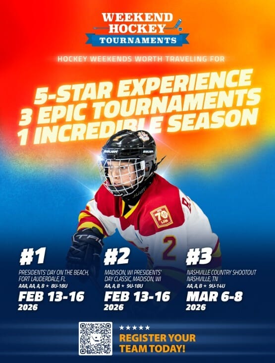 Weekend Hockey - Presidents Day in Madison, WI, Fort Lauderdale, FL, or Nashville, TN.